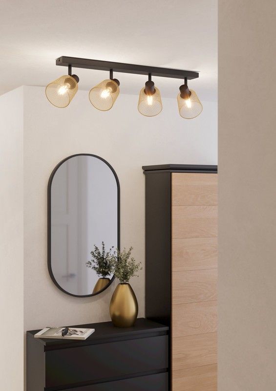 Ontdek hedendaagse elegantie met de Coslada plafondlamp van Quattroluce, een uniek stuk dat moderne verlichting opnieuw definieert. Deze armatuur bestaat uit vier spots van strekmetaal met een opvallende afwerking in geborsteld brons, die harmonieus zijn geïntegreerd met een gestructureerde zwarte metalen pendel.